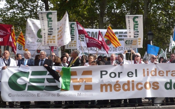 De entre todas las manifestaciones o concentraciones protagonizadas por los profesionales a lo largo del año, la única celebrada a nivel nacional fue la convocada por la Confederación de Estatal de Sindicatos Médicos (Cesm), y apoyada por el Foro de la Profesión Médica al completo, el pasado 21 de octubre. En ella, más de 300 representantes sindicales mostraron su queja ante el incumplimiento por parte del Gobierno de un acuerdo-marco firmado en 2013, en el que se establecían medidas para mejorar la situación laboral de los médicos así como la organización de las Unidades de Gestión Clínica. Una protesta que tuvo respuesta positiva por parte del ministro de Sanidad, Alfonso Alonso, a los pocos días.