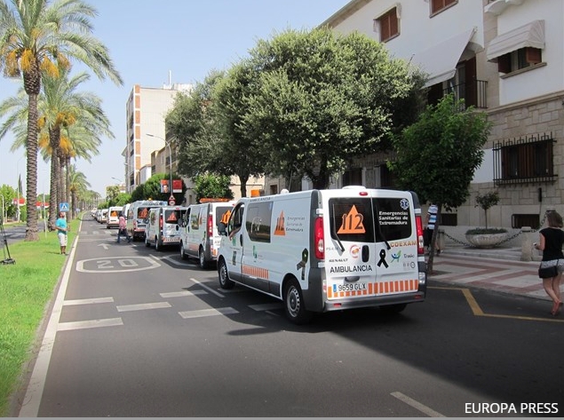 La Jornada de ayer fue especialmente intensa para el Consorcio Extremeño de Transporte Sanitario. Y es que un total de 120 ambulancias y 200 trabajadores tomaron las calles de Mérida haciendo sonar sus sirenas para protestar por el nuevo concurso que ha adjudicado este servicio a una empresa sevillana.
