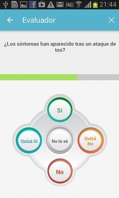 Esta app dispone de un evaluador de síntomas muy avanzado. Mediante su potente motor semántico es capaz de interpretar los síntomas que explica el usuario utilizando lenguaje natural, y llevar a cabo un completo cuestionario médico digital.