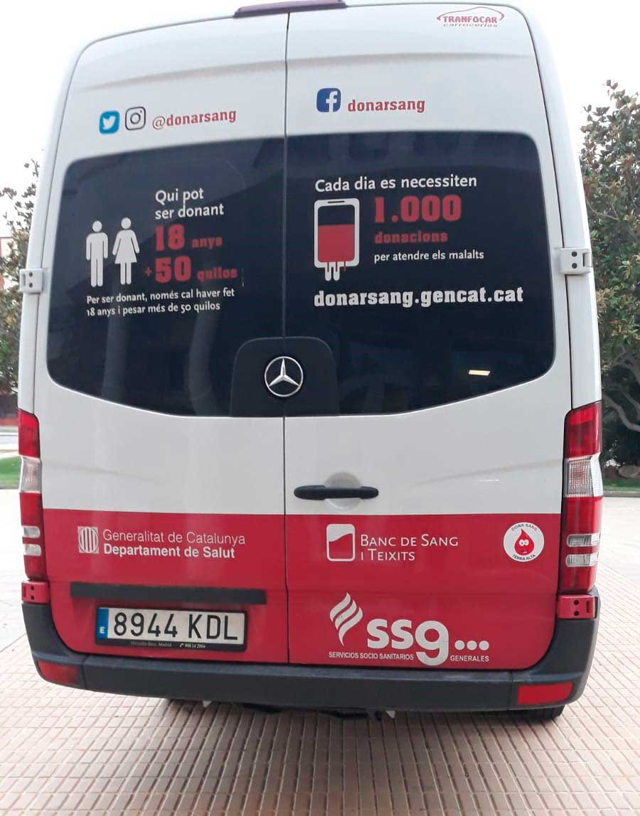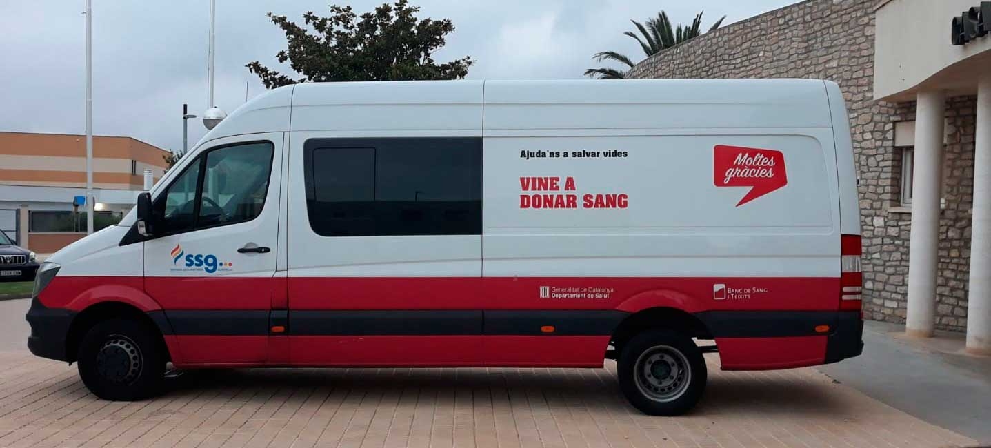 A la organización responsable de promocionar las donaciones de sangre y su derivados, de forma altruista, que se encarga de extraer, procesar y almacenar los diferentes hemoderivados para las posteriores transfusiones se le denomina banco de sangre. SSG actualmente participa en la actividad del banco de sangre de Barcelona. En la imagen podemos ver nuestro centro móvil de donación de sangre en Hospitalet del Infante en Tarragona, listo para una jornada de donación.