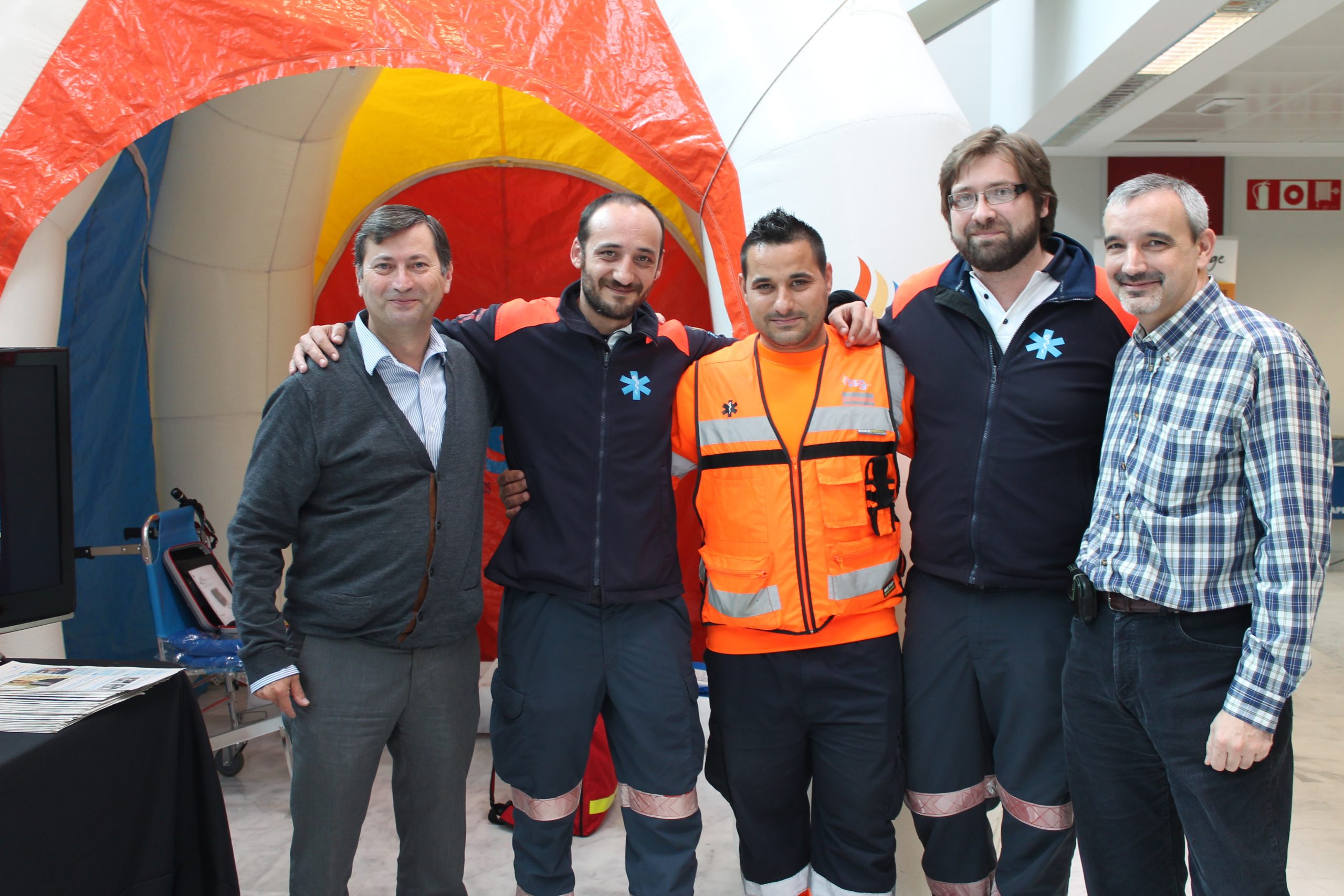 De derecha a izquierda: Gerente de SSG-IB, Esteve Gallardo; Coordinador de Transporte 061, Miguel Navarro; Coordinador Privado SSG, Toni Navarro; Coordinador de Transporte 061, Francisco Mico; Director Médico SSG, José Carlos Cardiel.