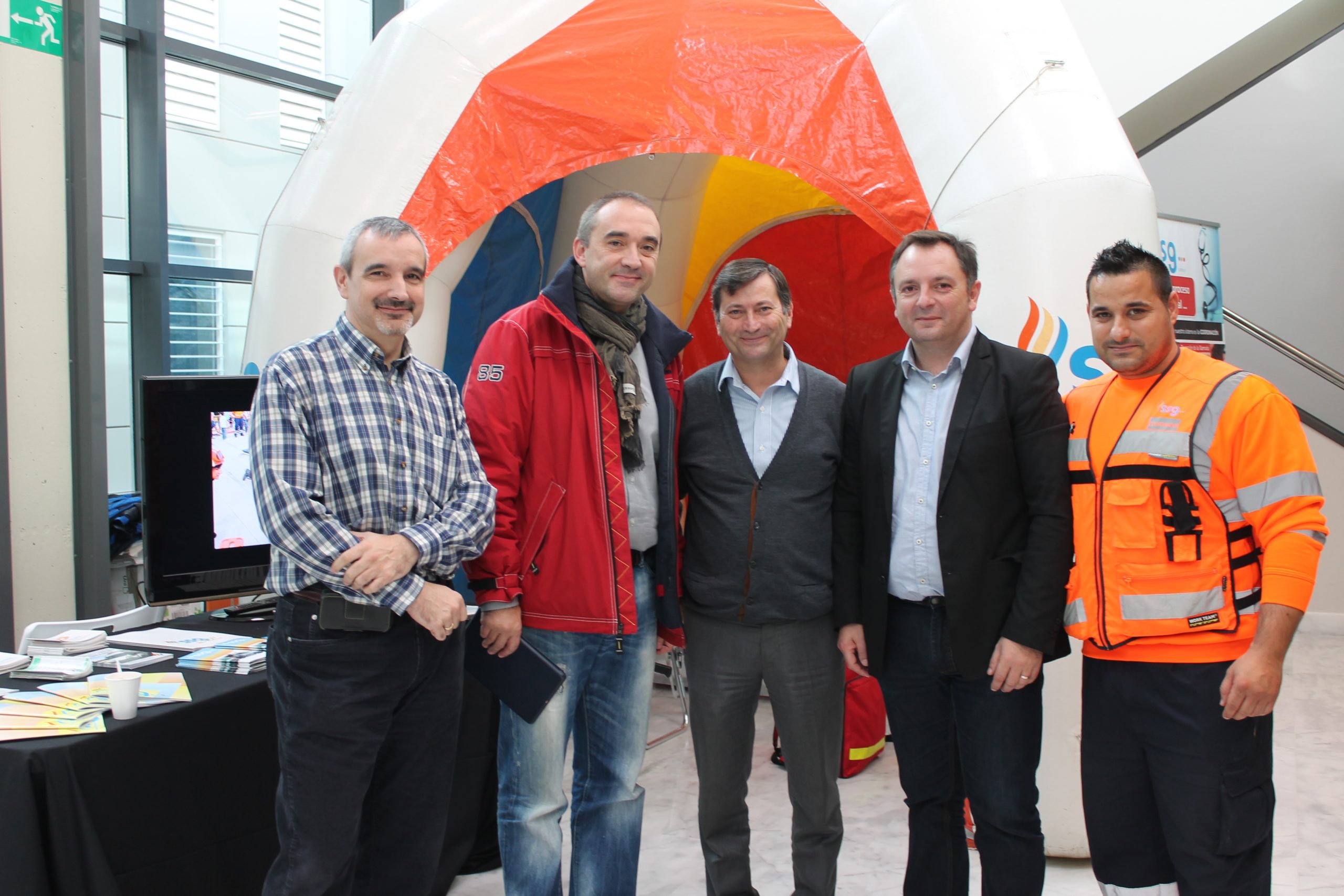 De derecha a izquierda: Director Médico Asistencial SSG, José Carlos Cardiel; Jefe de Servicio Asistencial 061, Iñaki Unzaga; Gerente de SSG-IB, Esteve Gallardo; Coordinador Enfermería 061, Pedro Montero; Coordinador Privador SSG, Toni Navarro
