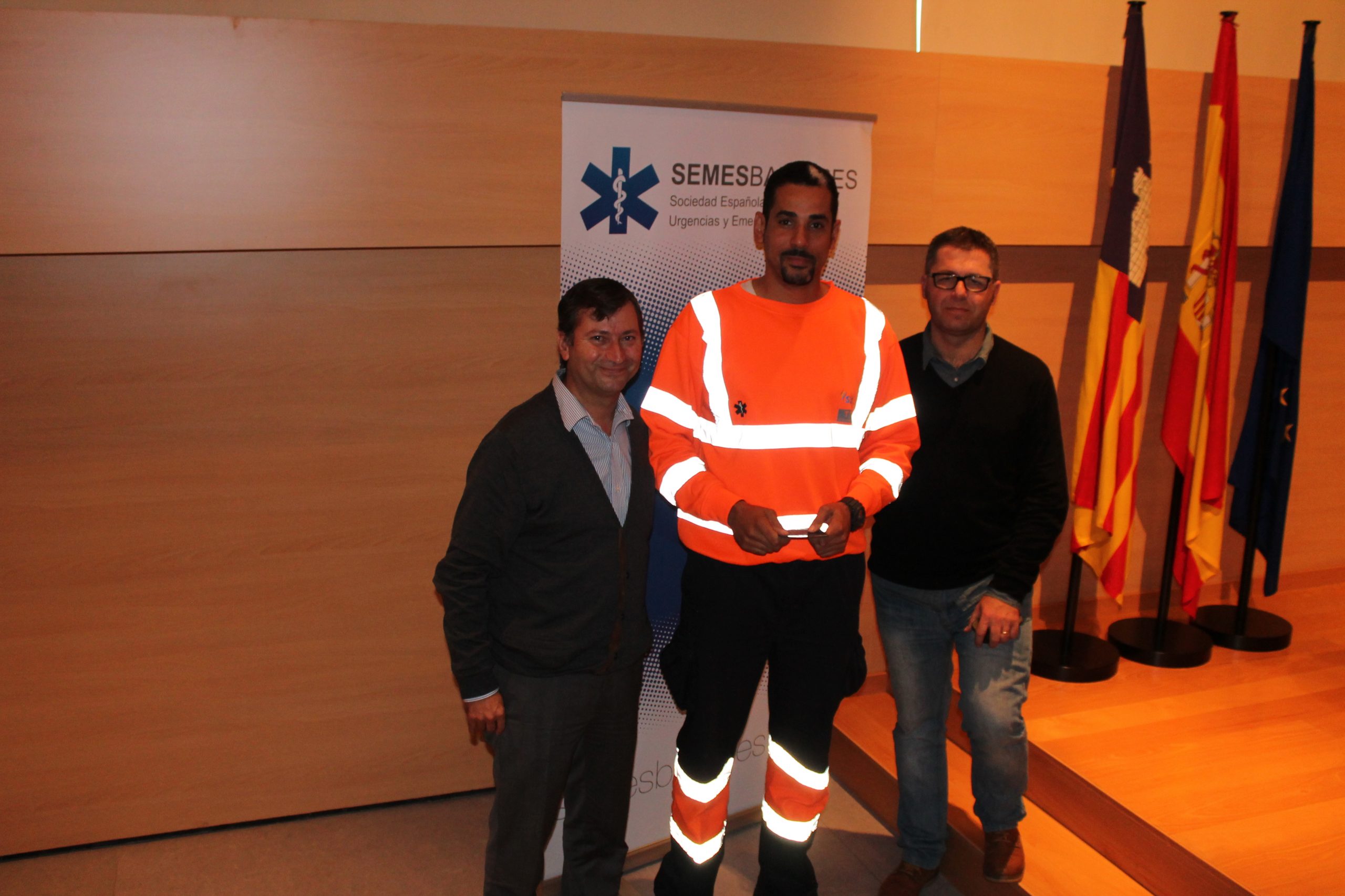TTS de SSG, Isaac Krubally (centro), como «Mejor conductor de Baleares»; Gerente de SSG-IB, Esteve Gallardo (Izq.); Vocal de Técnicos de SEMES Baleares, Guillermo Nicolau (Drcha.)