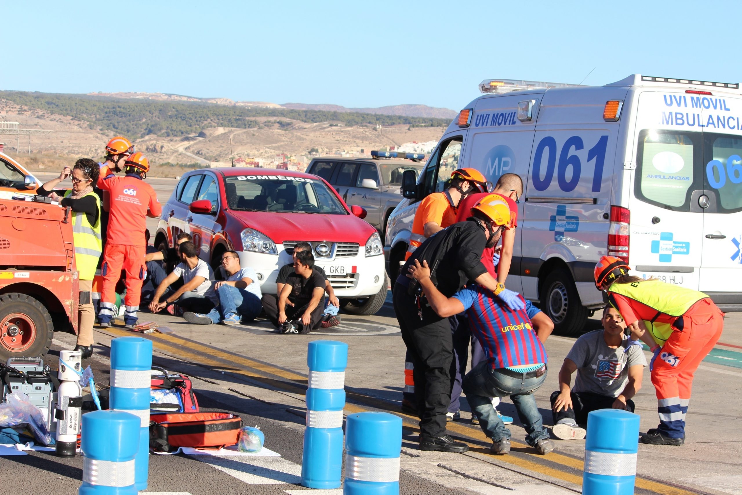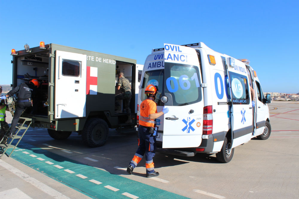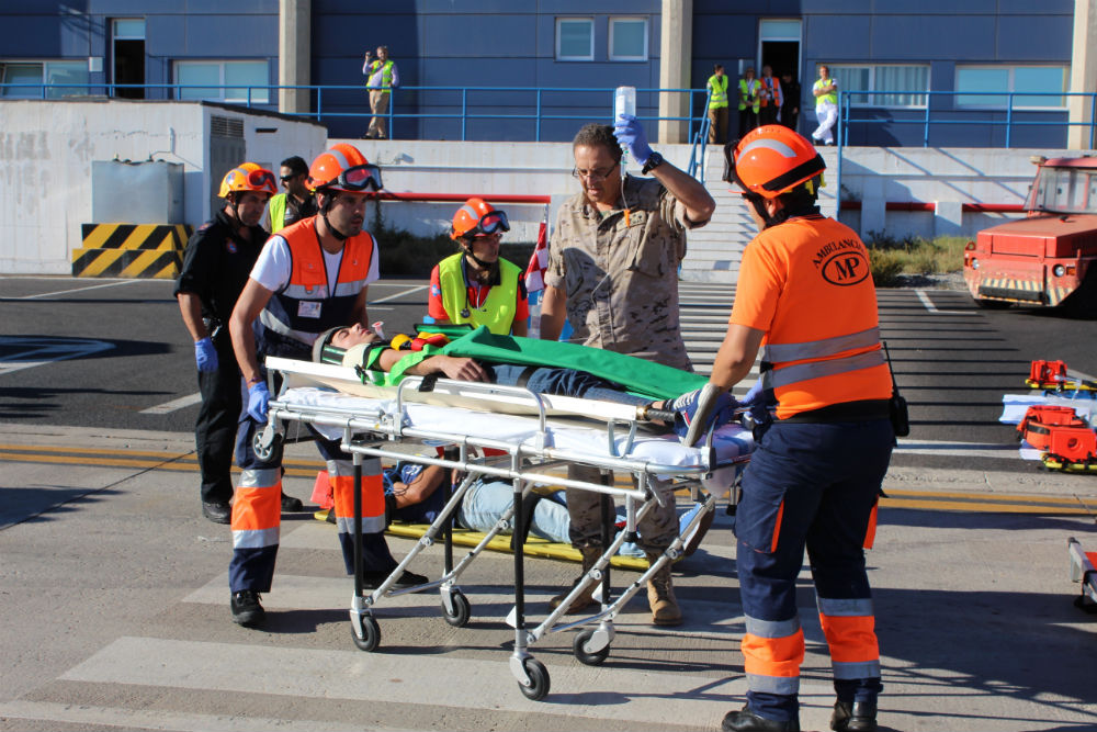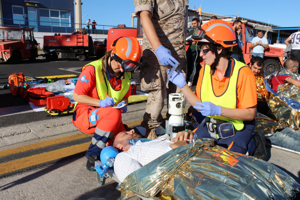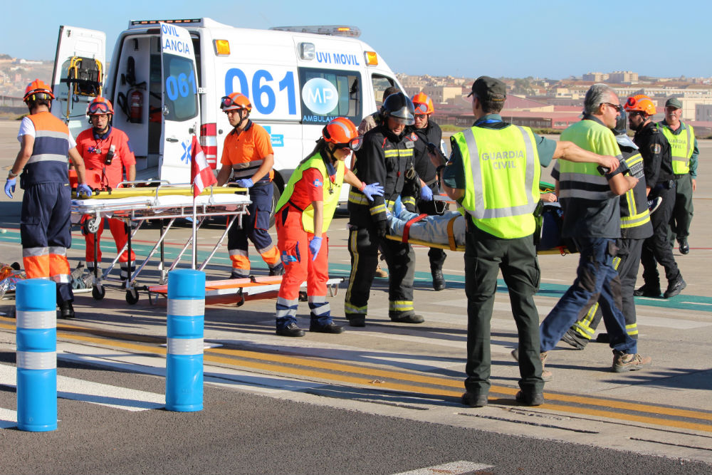 Grupo SSG, bajo la coordinación de AENA, ha realizado un simulacro de accidente con múltiples víctimas en el aeropuerto de Melilla, con el fin de poner en práctica el plan de autoprotección de dicho aeropuerto, y analizar su puesta en marcha y posibles mejoras, para dar una respuesta eficaz en caso de algún incidente en la terminal.