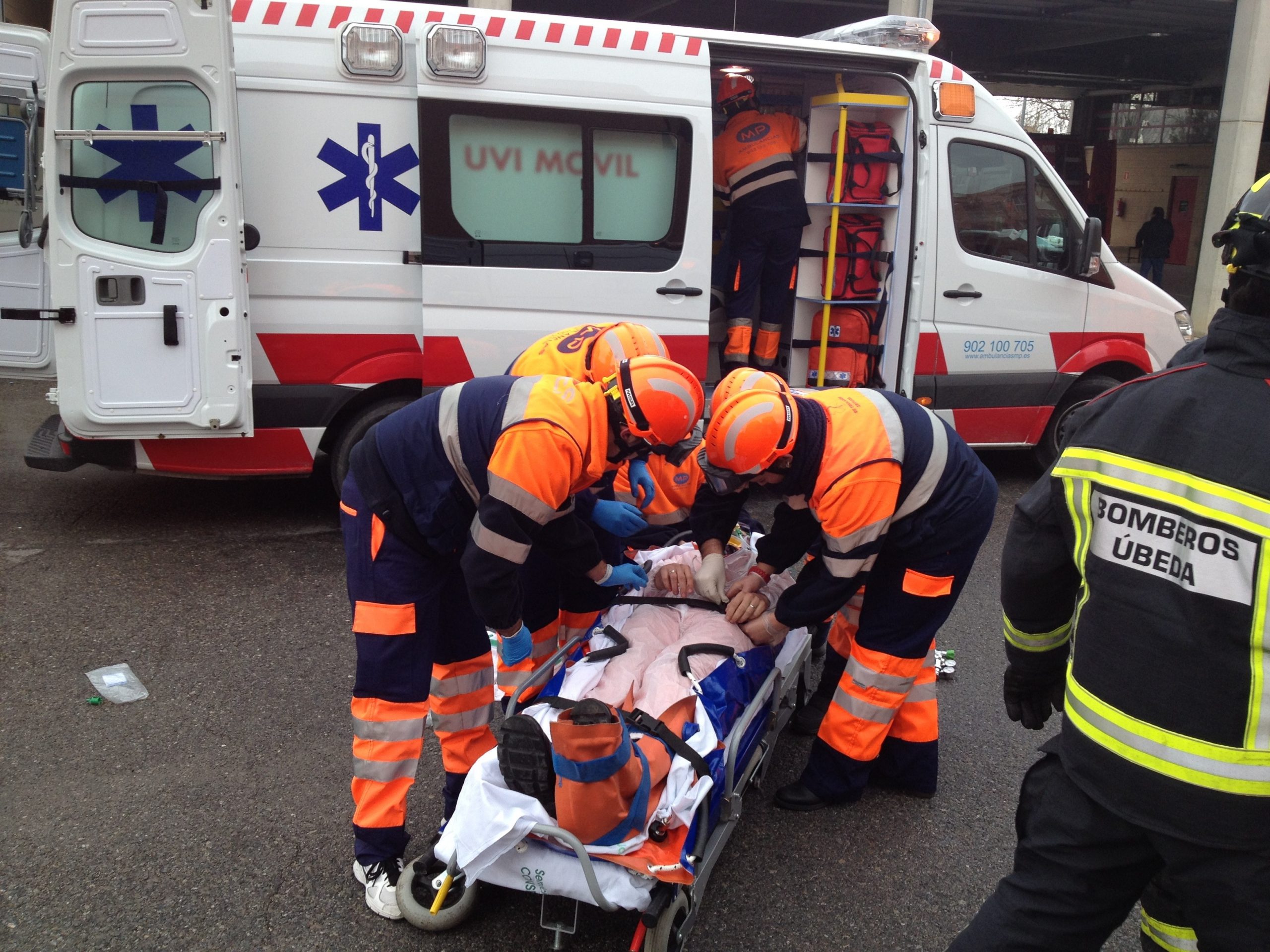 En esta ocasión, los servicios sanitarios extrahospitalarios de la empresa han realizado, junto a los Servicios de Incendios y Salvamento de Bomberos de la cuidad de Úbeda, un simulacro orientado a la importancia del uso de los mecanismos de seguridad existentes en los vehículos.